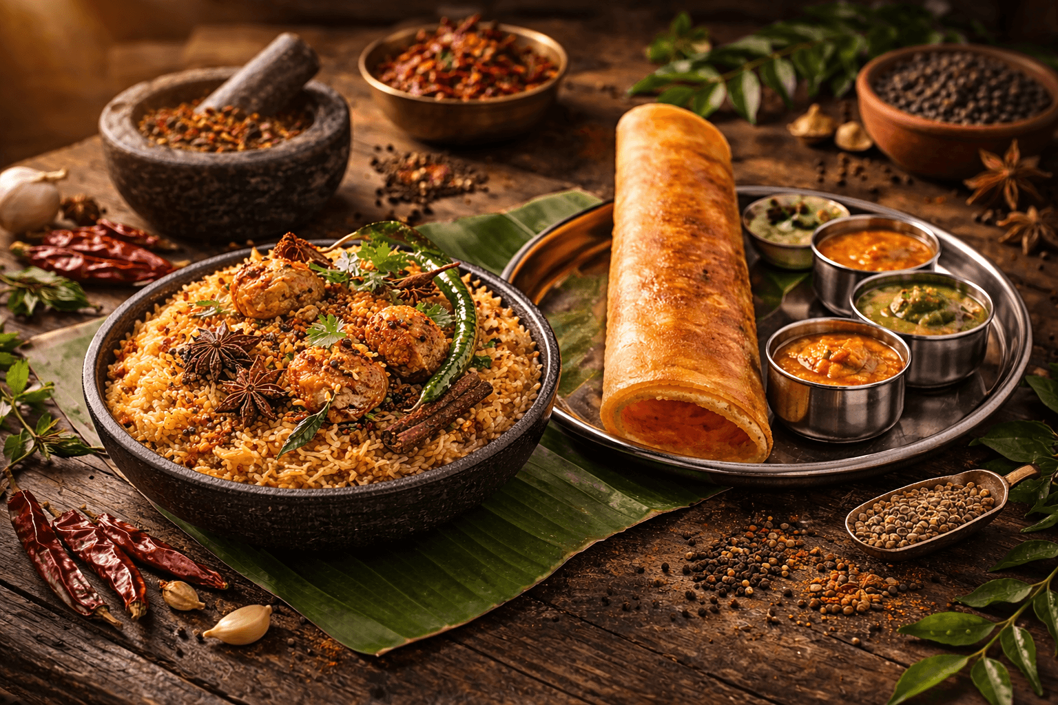 Step into the ancestral kitchens of Karaikudi, where saffron-kissed gravies and hand-ground masalas carry the soul of the Nattukotai Chettiars across centuries.